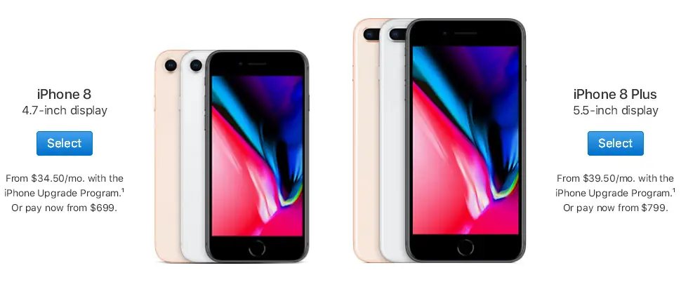 Pricing: $699 or $849 for iPhone 8, $799 or $949 for iPhone 8 Plus.