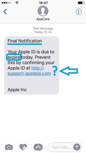First of all, you have to be aware that Apple never sends a text message to inquire about your Apple ID log-in credentials. Secondly, you have to check the URL that the text asks you to access. That’s obviously not the official Apple.com website, but a phantom web page used to retrieve your Apple ID once you type it.
