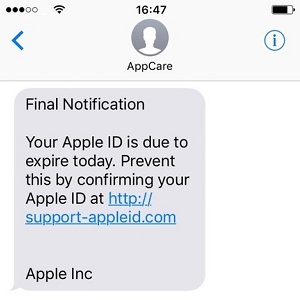 The sender’s phone number is also a great telltale sign. More advanced spammers are able to impersonate misleading names in the sender’s field, like AppCare in the above example. Be aware!