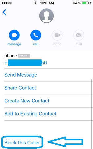 4. Pick the bottom setting that allows you to Block the Caller. This prevents additional spam from landing on your iPhone via the same sender.
