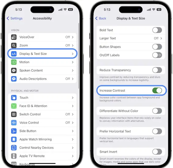 - 3. Turn Off Increase Contrast.