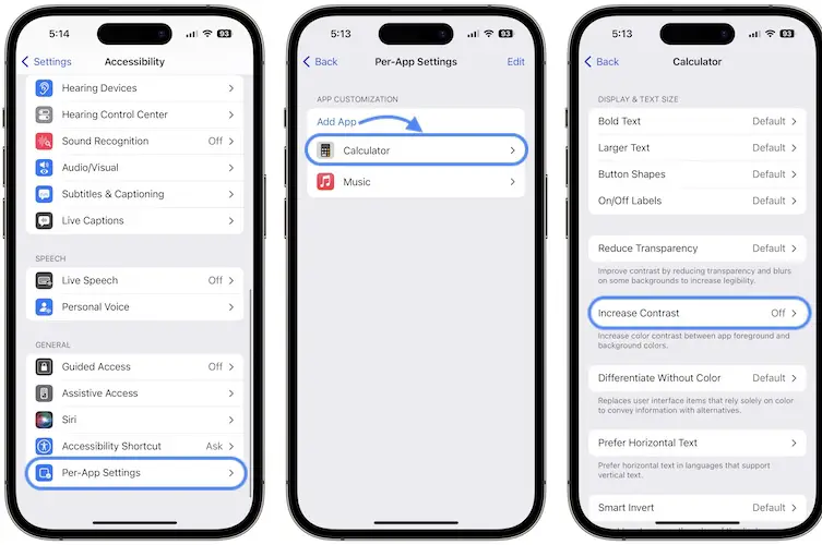 Tip: If the Increased Contrast feature is useful for you, you can only disable it for Calculator: