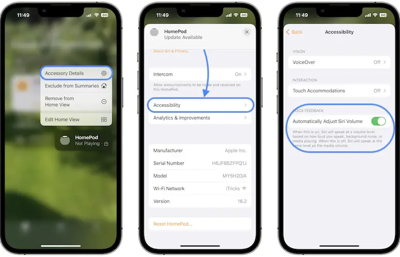 - 2. Touch & hold on your HomePod and go for Accessory Details.
