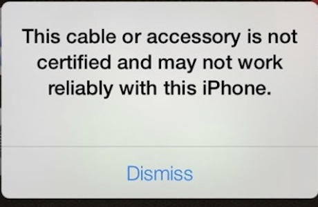 “This cable or accessory is not certified and may not work reliably with this iPhone.”