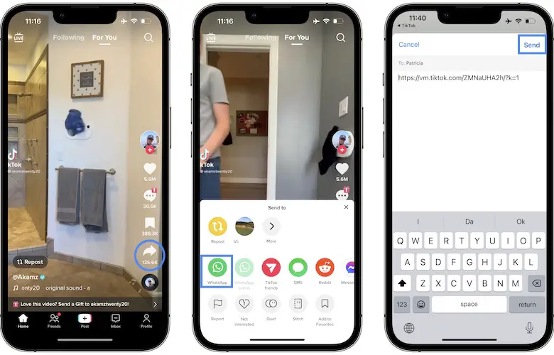 Workaround 2: If this doesn’t work, your only option left is to share the TikTok via a third-party app like WhatsApp, iMessage, FB Messenger or any other instant messaging app, used by both you and your friend!