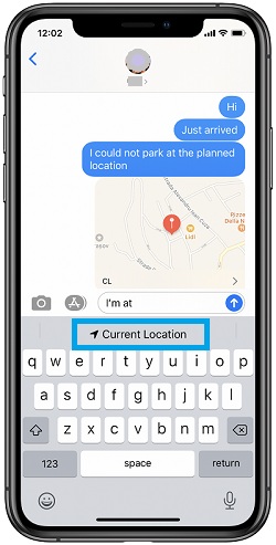 4. The “Current Location” option is suggested in the predictive text field. Tap it and your actual whereabouts will be shared.