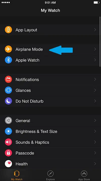 Even more easier is to activate Airplane Mode using your iPhone. You can open the Apple Watch app on your iOS device and tap on My Watch. Turn on the Airplane Mode > Mirror iPhone setting. This way, whenever you enable Airplane Mode on your iPhone, it will automatically activate itself on the Watch too! The same rule is applied if the command is given on the wrist gadget first.