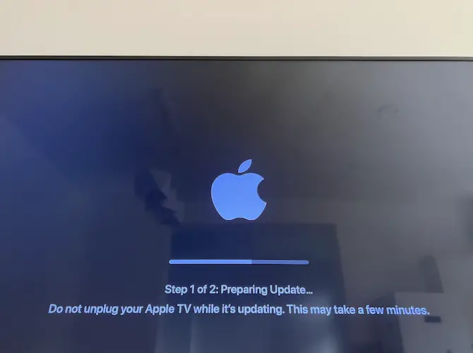 Tips: Do not unplug your Apple TV while it’s updating, even if the image briefly disappears from the TV screen! The device automatically reboots when the update is completed.