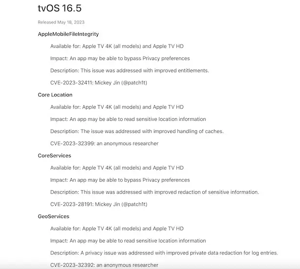tvOS 16.5 Features, Issues, Bug Fixes, Security Updates
