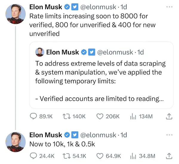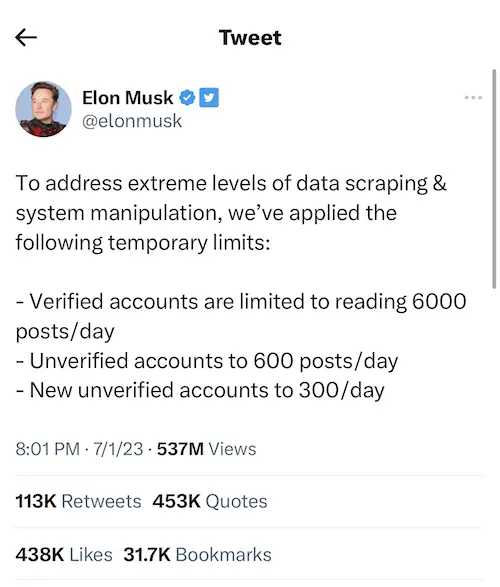 This new limitation has been confirmed by Elon Musk himself in the below screen captured tweet: