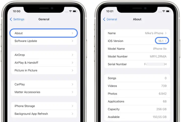 - 1. First, confirm that this is the problem. Go for Settings -> General -> About and confirm the iOS Version that’s installed on your device. If it’s anything higher than iOS 16.0.2 continue with the following steps.