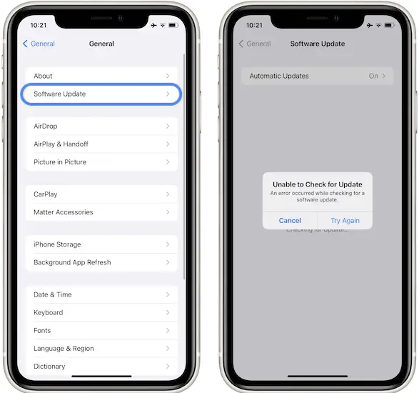 Posted in Errors and Issues by Mike on September 23, 2022Unable to Check for Update error keeps popping up on iPhone? iOS 16.0.2 not showing up in the Software Update section, no matter how many times you Try Again? You’re informed that an error occurred while checking for a software update?