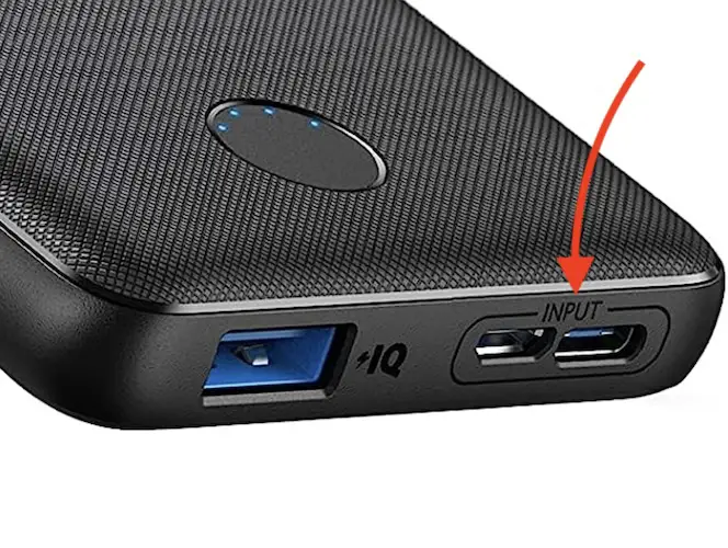 In this particular case we’re dealing with an Anker PowerCore Slim 10k PD model that clearly states Input next to the USB-C port. This means that the plug in question will draw power instead of sharing.