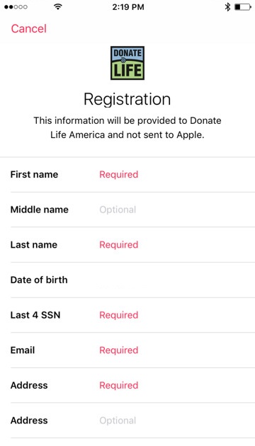 Do mind, that all the data is encrypted and sent to the Donate Life organization and aren’t stored by Apple.