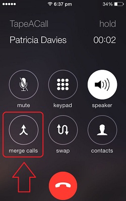 Whenever you wish to tape your iPhone during an outgoing call, you have to perform the following steps: open TapeACall and tap the red record button. Your device will initiate a call towards the local access number. When the call connects, press the ‘add call’ option and establish a second talk with your desired contact. After this 2nd call hooks up, press the ‘merge’ feature, which is now replacing the ‘add call’ icon! This is it! You’ll be sure that the recording is ongoing when the Caller name displayed at the top of your screen looks like: TapeACall & [Contact Name]!