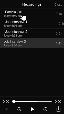 To play a recording open TapeACall and hit the Play icon. Select a conversation from the list, add a label to it and listen to the audio file. Share your interviews on the web or export them via Mail! As mentioned before, the Lite version covers only the first 60 seconds of a recording, if you need unlimited data you have to spend $10 and purchase TapeACall Pro!