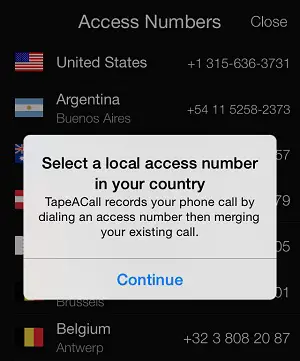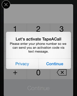 After you download and install the app, open it and you’ll be prompted to provide your phone number, to activate the service. A text with the activation code is sent to your device. Input it! You only need to select an access number, matching your country, and TapeACall will be ready to record your talks.