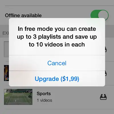 Worth mentioning is that in free mode, Ultratube allows caching of no more than 10 videos, spread around in up to 3 categories. To lift this restriction we recommend you upgrade or directly purchase the pro version. The fee is small and we find this purchase worth the two bucks. Most important benefits provided by Ultratube Pro are: