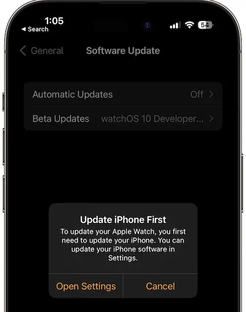 - 6. Tap Beta Updates and select watchOS 10 Developer beta.