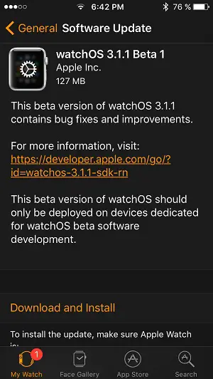 Download watchOS 3.1.1 Beta 1 on Apple Watch