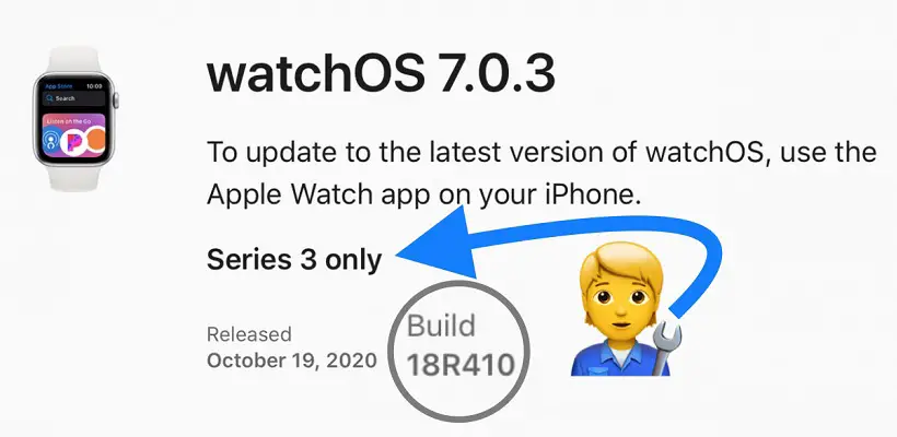 Important: Because watchOS 7.0.3, build number 18R410, is aimed solely to fix the unexpected restarts, its limited to the Apple Watch Series 3 models. This means that if you own a different watchOS 7 compatible device, you won’t see this release in the Software Update screen.