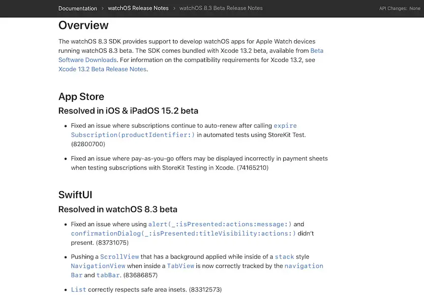 You can read them in the screenshot provided nearby or on the official Apple watchOS 8.3 beta documentation page.