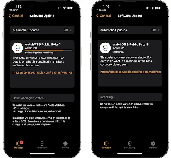 - Tap Download and Install on watchOS 9 Public Beta, provide Passcode and follow the on-screen prompts.