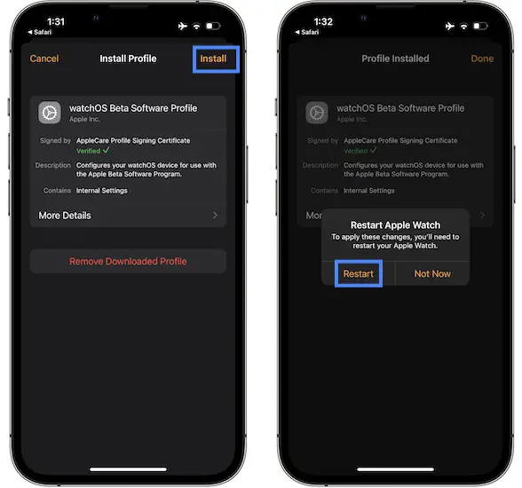 - 3. Allow Apple Watch to download the watchOS 9 Beta Profile.