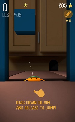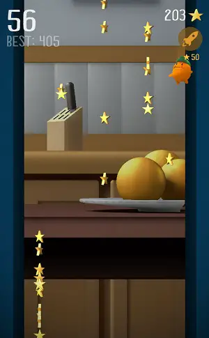 Start ascending by dragging down your character and aim its sling shot propelled path. You need to select the right trajectory and boosts your character towards a higher platform. Use angles and sidewalls to bounce your Bean Boy. The ideal path is the one that also collects as many stars as possible. Your character grabs a star if it hits it.