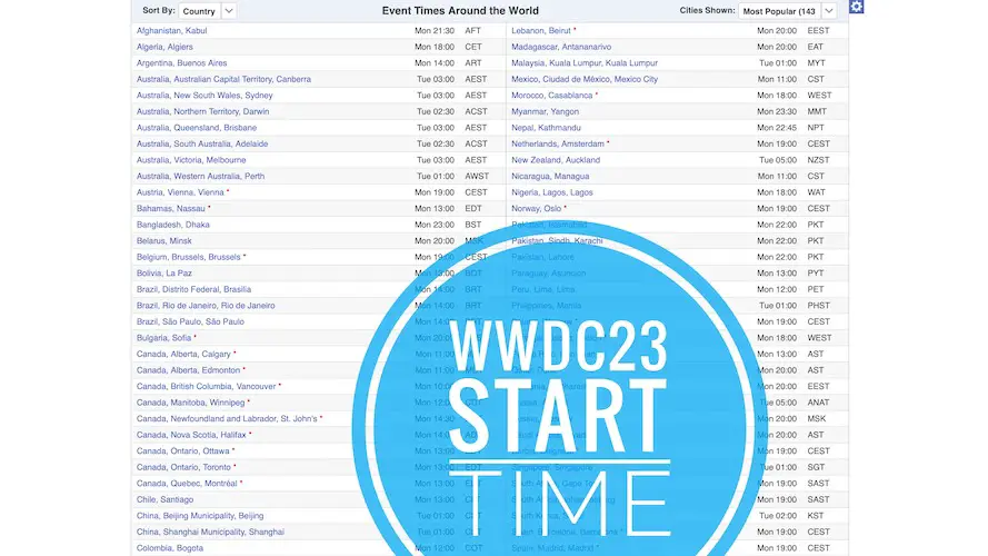 Tip: If you did not find the WWDC 2023 keynote time for your location in the above table, you can open this live timeanddate.com link!